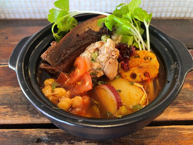 鶏豚牛の旨味と生薬が凝縮したスープに、20種以上のスパイス、旬なお野菜がたっぷり。薬膳出汁カレーで身体の中から元気になりましょう!!