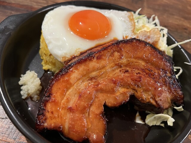 スパイスダレに漬け込み12時間低温調理した豚バラの塊を、じっくりとオーブンで焼くことにより、柔らかくジューシーな仕上がらになっております!濃厚な旨赤卵目玉焼きとの相性抜群です!