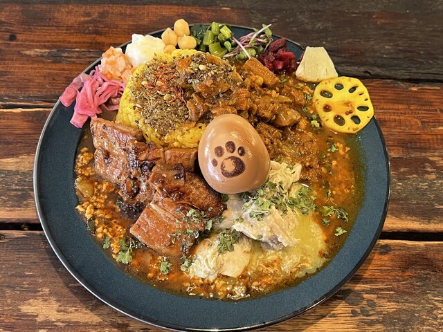 ランチはスパイスカレー&チャーシューエッグ飯!